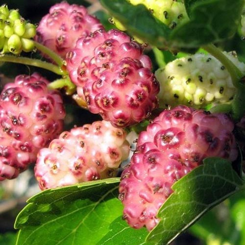 Дозрівання ягід припадає на початок-кінець липня. Особлива ця шовковиця довгими гілками, схиленими до землі. Плоди чорні,білі та рожеві в залежності від сорту дуже смачні, довжиною до 10 см.